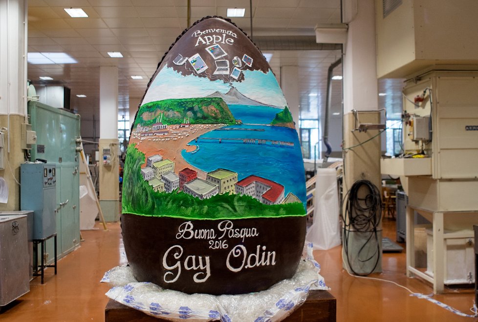 Un uovo di cioccolato di ben 300 kg è stato preparato dalla storica cioccolateria di Napoli Gay-odin. L’occasione è di quelle davvero speciali: omaggiare la Apple, l’azienda di Tim Cook che aprirà a breve un centro di ricerca per applicazioni proprio nella nostra città. L’uovo di cioccolato è stato dunque realizzato per dare il benvenuto alla società americana che tra tante città europee ha scelto proprio Napoli per la sua nuova struttura lavorativa.