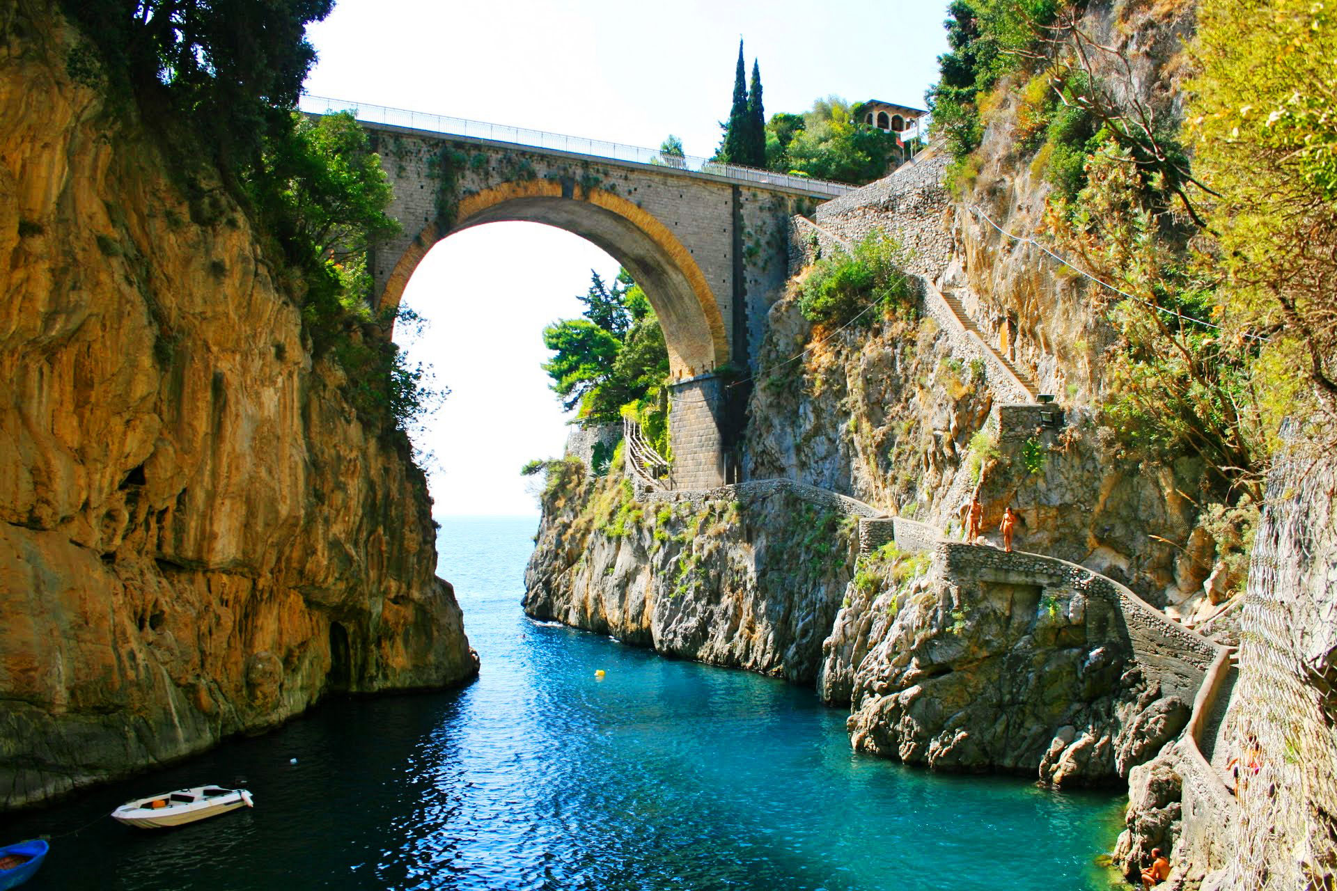 Le acque del fiordo di Furore furono rese famose da Anna Magnani e Roberto Rossellini arrivati sul posto qui per le riprese di Miracolo.