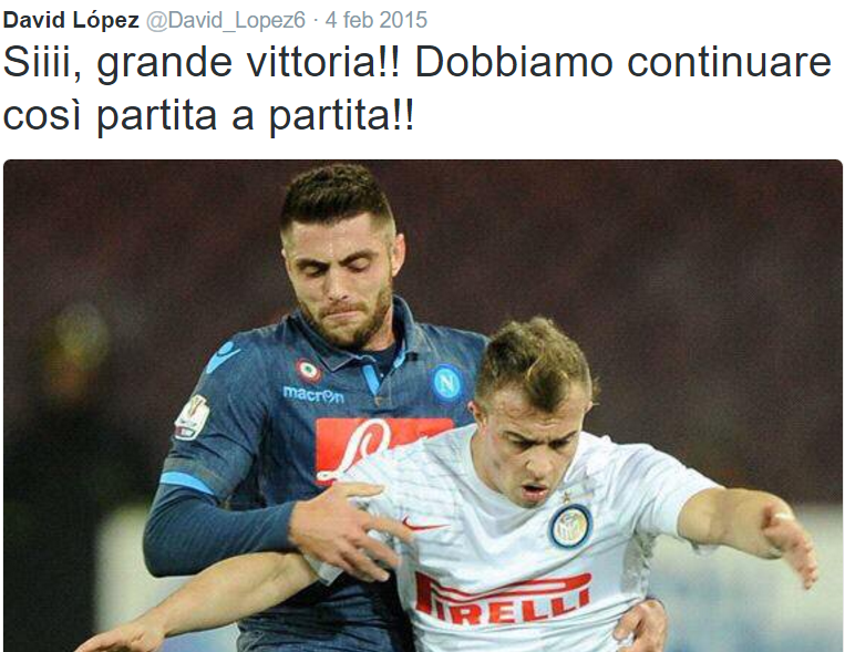 il centrocampista è stato venduto per quattro milioni e mezzo (fonte Gazzetta.it) all’Espanyol. A conferma della decisione il comunicato ufficiale dell’SSCN: “La Società Sportiva Calcio Napoli ufficializza la cessione a titolo definitivo del calciatore David Lopez Silva all’RCD Espanyol di Barcellona“.