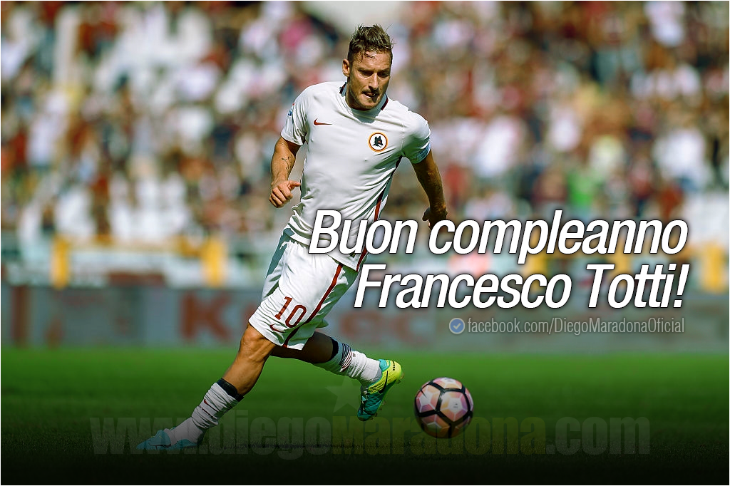 Diego Armando Maradona ha fatto gli auguri a Francesco Totti per il suo 40esimo compleanno. Il campione argentino ha voluto dimostrare la sua ammirazione al Capitano della Roma.