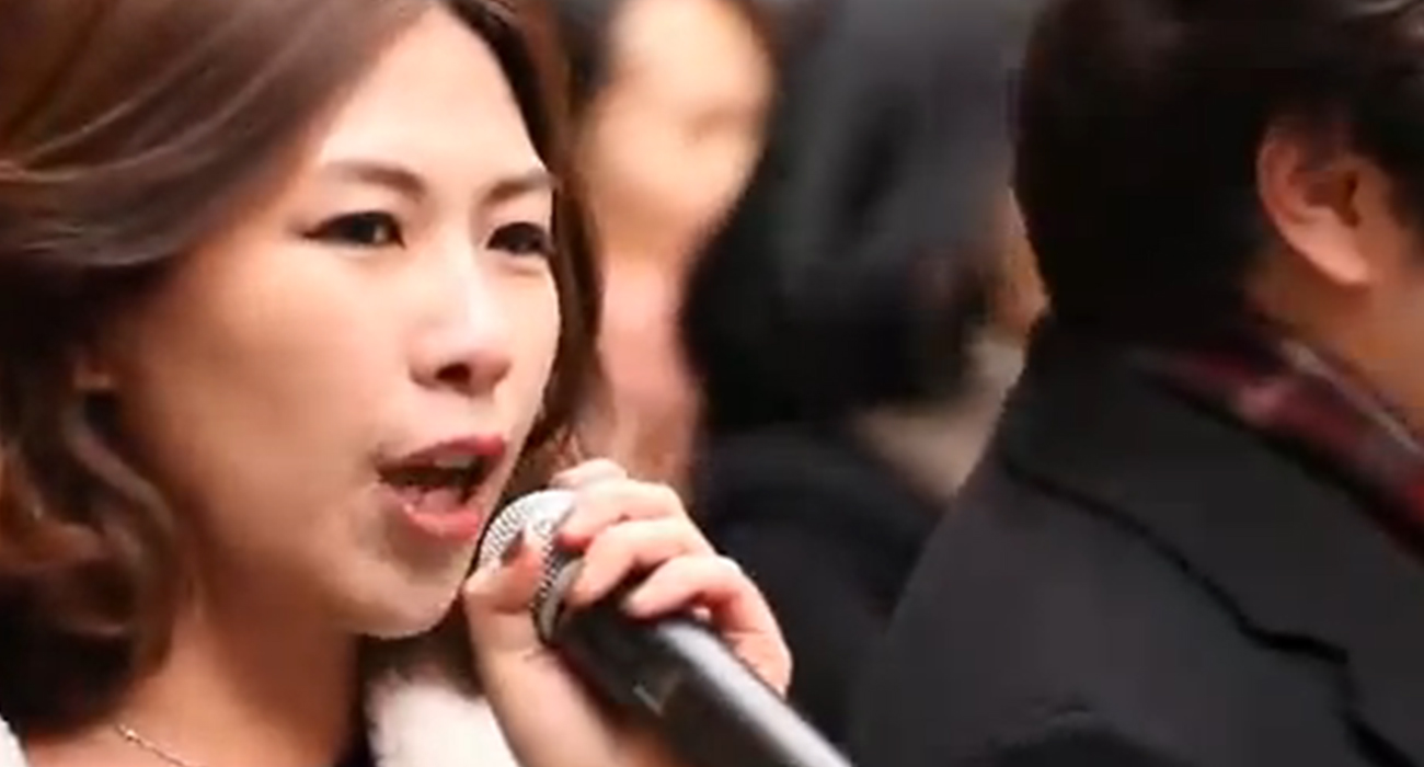 Si tratta di un mercato o di un centro commerciale. Un mare di gente canta in coro “Funiculì funiculà“, canzone famosissima del vasto repertorio della musica napoletana. Le persone sono state accompagnate da un gruppo di tenori. Succede a Seul, capitale della Corea del Sud.