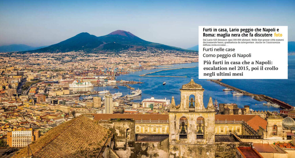 I quotidiani La Nazione, La Provincia di Como e il portale ciaocomo.it, hanno utilizzato dei titoli poco corretti nei confronti di Napoli. Infatti, riportando delle notizie di cronaca relativi a furti e rapine, sono stati fatti dei paragoni tra alcuni piccoli centri del Nord, rispetto alla città partenopea. Il concetto che è stato trasmesso è: come è possibile che in questi posti avvengano più crimini che a Napoli e al Sud? Perché secondo loro nel meridione è normale che si agisca in maniera truffaldina.