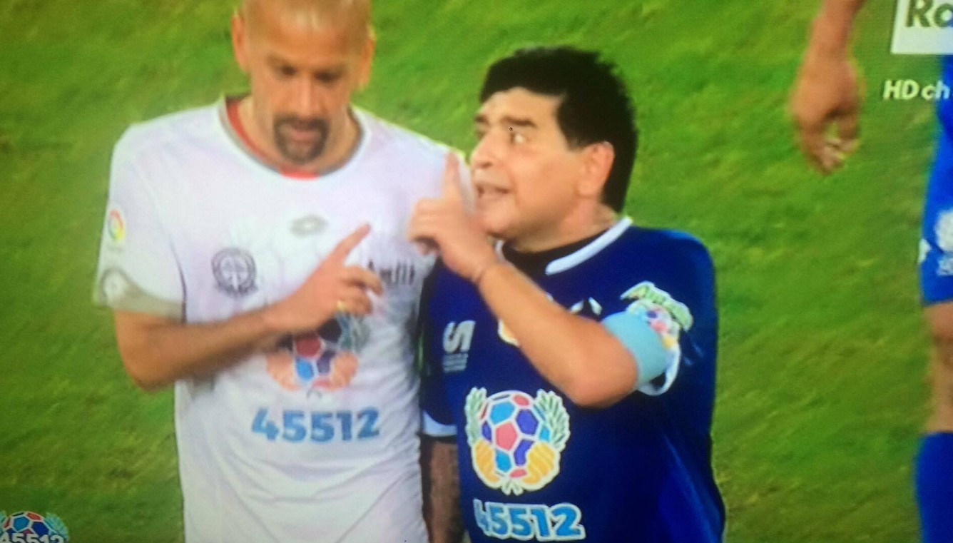 La formazione è stata la seguente: Maradona con Totti e Di Natale in divisa blu. Ronaldinho più Veron, Zambrotta, Davids, Rui Costa e Claudio Lopez in bianco. Il Pibe de Oro ha incantato tutti con la sua prestazione anche se da fermo mostrando un’eleganza unica.La lite tra i due ex campioni è nata perché Juan Sebastian Veron ha avuto un forte contrasto con Maradona, da qui allo scontro verbale è bastato veramente poco.