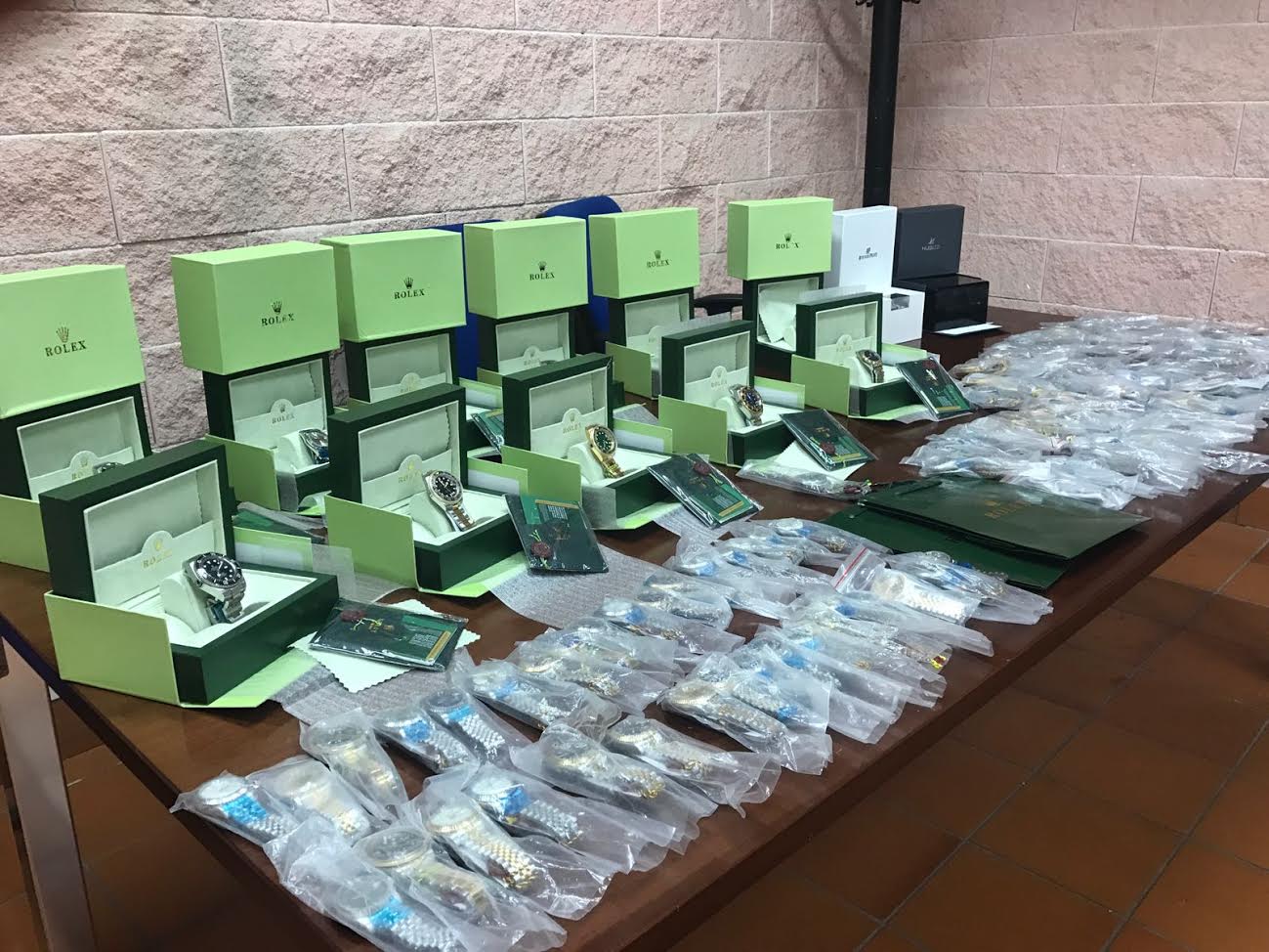 Denunciato un uomo, G.M. di 51anni, cognato del gestore dell’hotel che aveva in uso il deposito. Gli orologi erano corredati di scatole e certificazione di autenticità, risultate rigorosamente false.