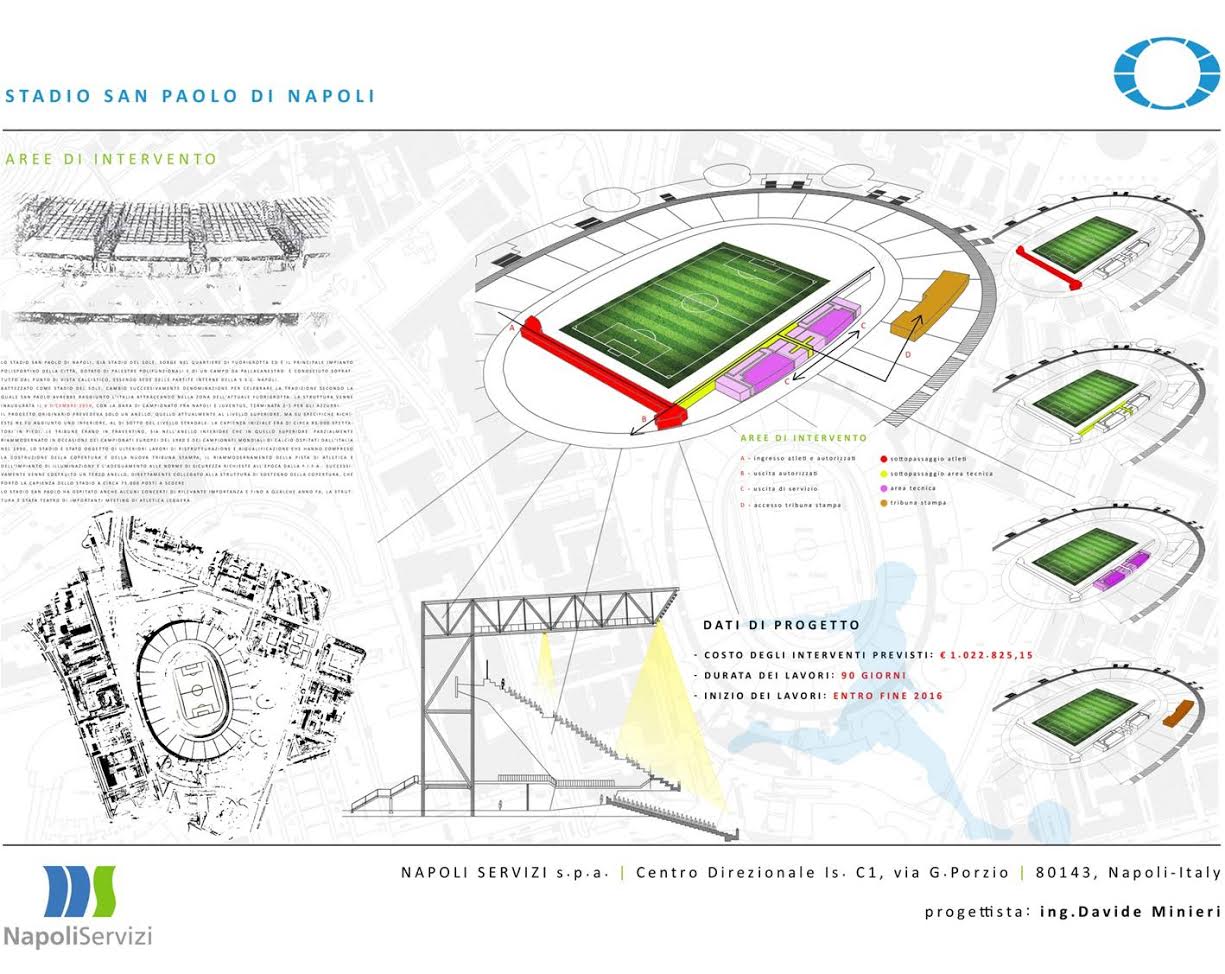 E’ il primo tassello del progetto di restyling dello stadio San Paolo, grazie ai 25 milioni ottenuti dal Credito Sportivo, che il comune di Napoli eseguirà nel giro di novanta giorni. I lavori partiranno (senza condizionale) entro la fine del 2016.