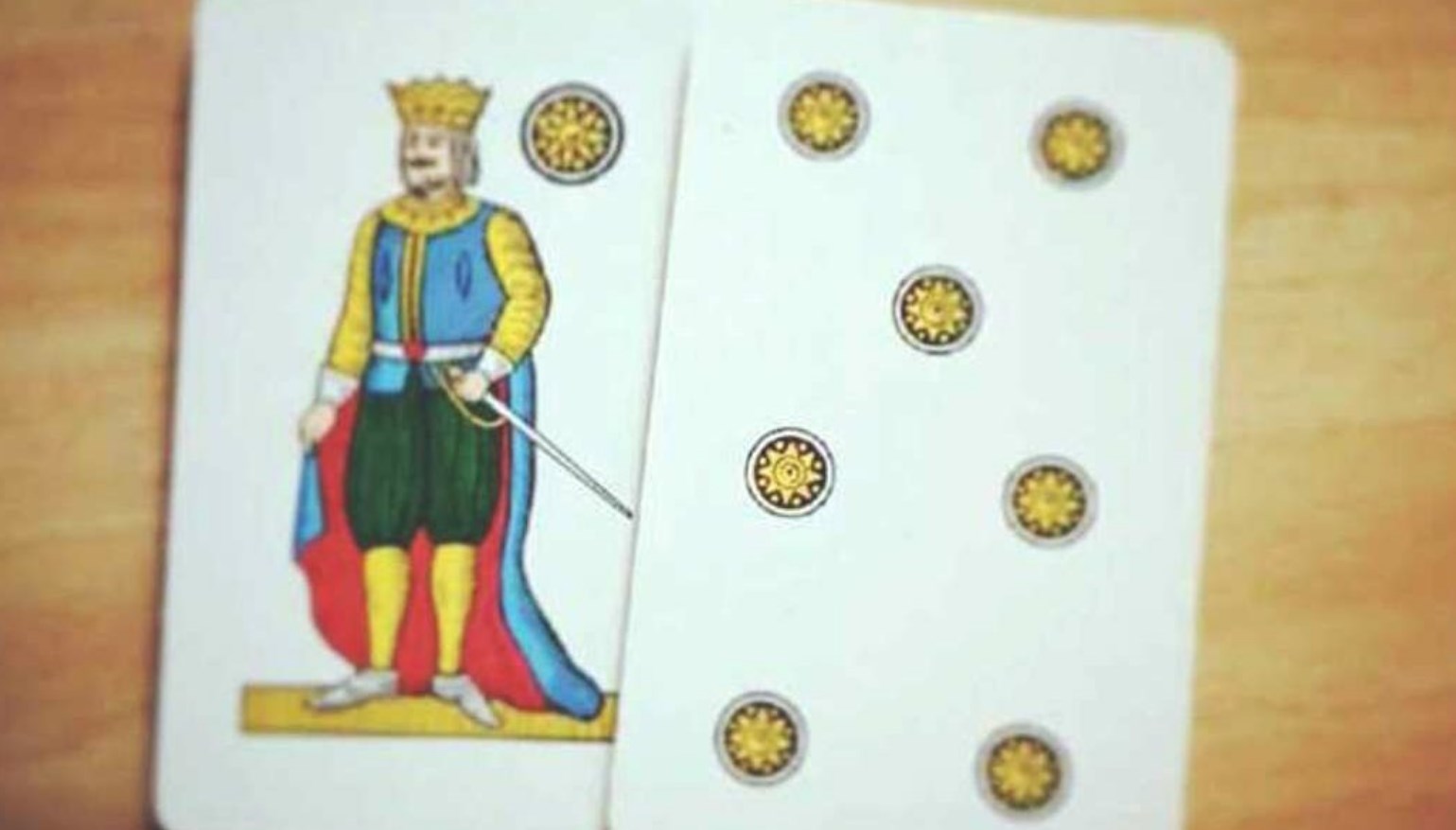 Prima di cominciare questa specie di partita simulata, facciamo chiarezza riguardo il valore delle carte. Ogni carta vale esattamente quanto vale: l’asso vale 1, il 2 vale 2, il 3 vale 3, ecc. Le figure valgono mezzo. Il re di denari vale quanto si vuole. E’ la cosiddetta matta, e viene sfruttato da chi ha la fortuna di averlo, per raggiungere il sospirato 7 e mezzo.