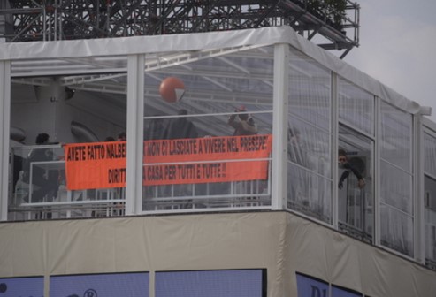 NAlbero, continuano le polemiche. Solo un giorno dopo l’apertura al pubblico arrivano seri problemi, circa cinquanta manifestanti per il diritto alla casa hanno occupato il primo piano della struttura per protestare.