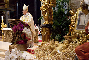 La Sua venuta in Terra è un messaggio di speranza e di salvezza, e per evitare che la figura di bimbo si trasformi nel mito di una bella favola, o nella tenerezza di una bella immagine, per la Messa della Vigilia si è scelto un passo preciso del Vangelo secondo Luca. Qui si inserisce la nascita di Gesù in un preciso contesto storico, con personaggi, editti, censimenti, tutti documentati affinché la figura di Gesù sia vissuta come realmente è stata: concreta e reale.