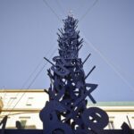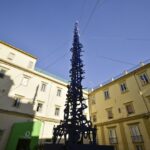 Non solo N’Albero, a Napoli c’è un altro “abete” natalizio di cui si parla in tutto il mondo. È l’opera di Mimmo Paladino: una guglia, un obelisco, una bandiera per la città con il blu del mare,  i numeri del tempo che scorre e i suoni dei vicoli, delle piazze, della Gente, del Natale.