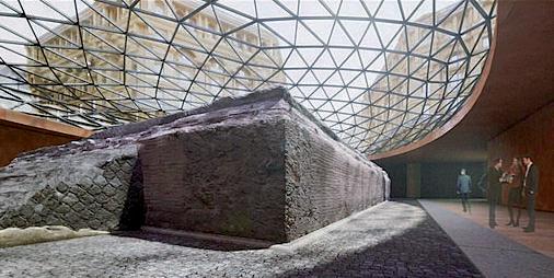 Lo scavo archeologico in atto nell’area ha riportato alla luce reperti di straordinario interesse per la città: un tempio risalente al I secolo d.C., un porticato Ellenistico di età Flavia e una pista da corsa del ginnasio. L’intera costruzione sarà coperta con una calotta trasparente (chiamata “Lanterna magica”) per dare l’idea di un museo aperto a tutti.