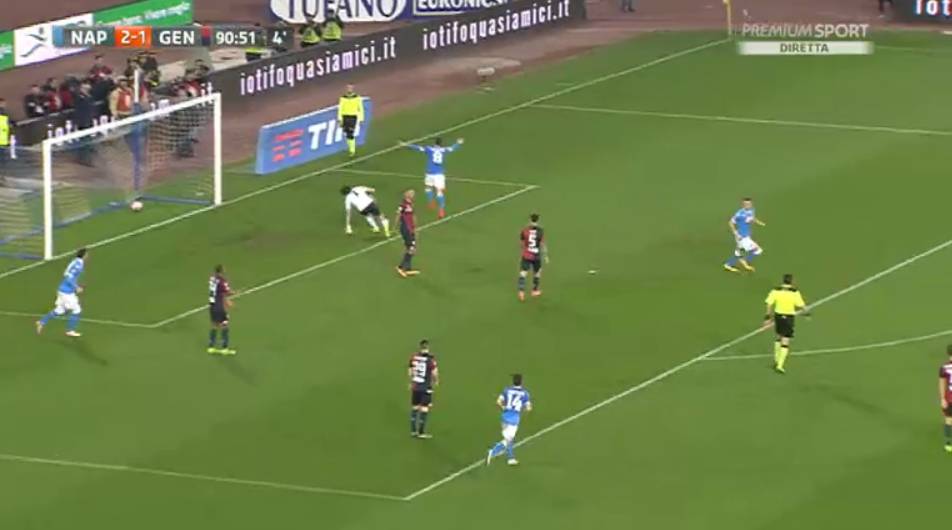 Dopo la goleada del Bologna l’ultima giornata di campionato (1-7 per gli azzurri) gli undici di Sarri si confrontano stasera contro gli avversari. Sono circa 40.000 i tifosi presenti allo stadio San Paolo per l’anticipo della 24esima giornata di Serie A. Tra questi circa 300 supporter rossoblu. Il club azzurro ha giocato un primo tempo tutto in attacco, sembra però un Napoli meno sciolto e meno fluido di quello che ha giocato con il Bologna. Su una clamorosa azione di Lorenzo Insigne manca il gol per un miracolo di Eugenio Lamanna, portiere della squadra genoana.