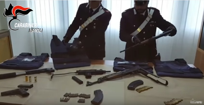 Dagli accertamenti successivi, il furgone è risultato provento di una rapina effettuata a Orta di Atella (Caserta) nel dicembre 2016. Ispezionando poi il vano di carico, all’interno di tre borsoni i militari hanno trovato una mitraglietta “Uzi”, 2 fucili mitragliatori Kalashnikov, una semiautomatica con matricola abrasa, un fucile a pompa, 4 giubbotti antiproiettile, 60 cartucce per Kalashnikov, una quarantina di cartucce 9×21 e 3 calibro 12. Sulle armi sono in corso accertamenti per verificare provenienza ed eventuale utilizzo in recenti fatti di sangue.
