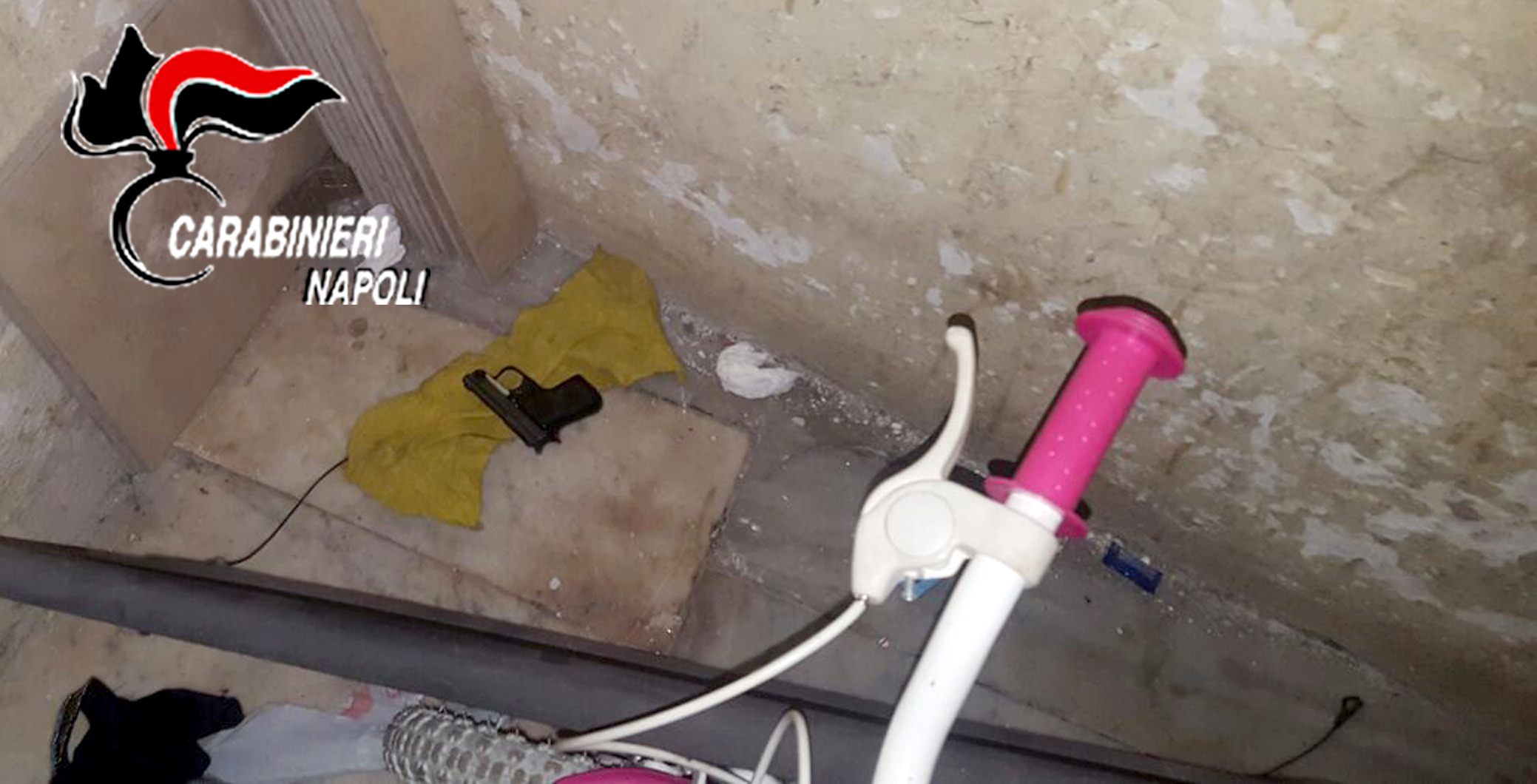 Una pistola nascosta nelle scale di un condominio, vicino alla bici di un bambino. E’ quanto scoperto dai carabinieri a Napoli.