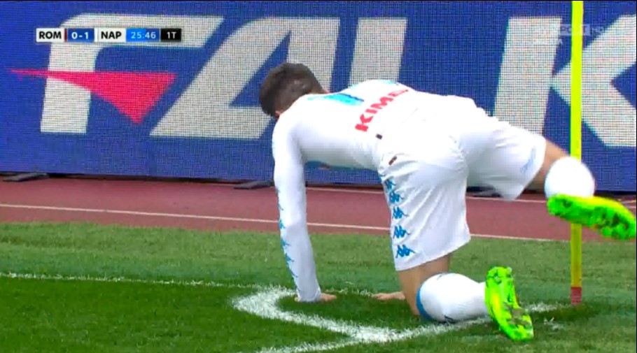 Dopo che Dries Mertens ha segnato la prima rete durante il corso del match Roma Napoli in molti si sono chiesti il motivo che avrebbe spinto l’attaccante belga ad esultare in maniera così anomala. In pratica il calciatore azzurro ha simulato di far pipì come un cane sulla bandierina.