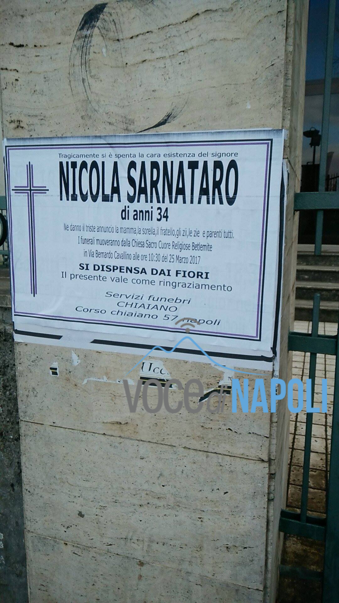 Accanto all’albero dove Nicola è morto ci sono tanti fiori e il messaggio degli amici: “Sarai per sempre nel nostro cuore, nelle nostre vite, nei nostri giorni“. Quei tanti amici che si sono uniti alla madre, al fratello e alla sorella durante i funerali, tenutisi a pochi metri da casa sua dalle Suore Betlemite. La chiesa era gremita di gente, per l’occasione la famiglia aveva chiesto di portare un dettaglio arancione, era il colore preferito di Nicola, un modo per ricordarlo con allegria, per quanto fosse possibile in una simile situazione. All’uscita c’è stato un corteo, tutti si sono fermati davanti al portone di casa Sarnataro, dove Nicola è morto. Dove c’è ancora quel terribile disegno, che qualcuno dovrebbe avere la sensibilità di pulire.