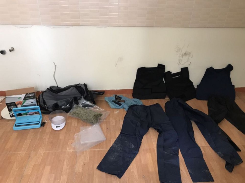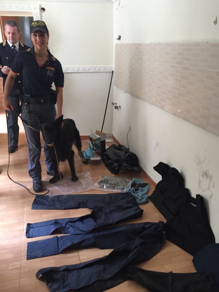 L’appartamento privo di ogni arredo, era composto da tre stanze, un bagno e uno stanzino, che si aprivano l’uno nell’altra. All’interno di un borsone sportivo, poggiato sul finestrino del bagno, sono stati trovati 3 giubbetti antiproiettile, un revolver Smith & Wesson (modello P.38 SPL CTG), con matricola abrasa nel cui tamburo c’erano 3 proiettili calibro 38 special, 2 guancette per pistola e, avvolti in un fazzoletto di carta, 4 proiettili calibro 9×21.
