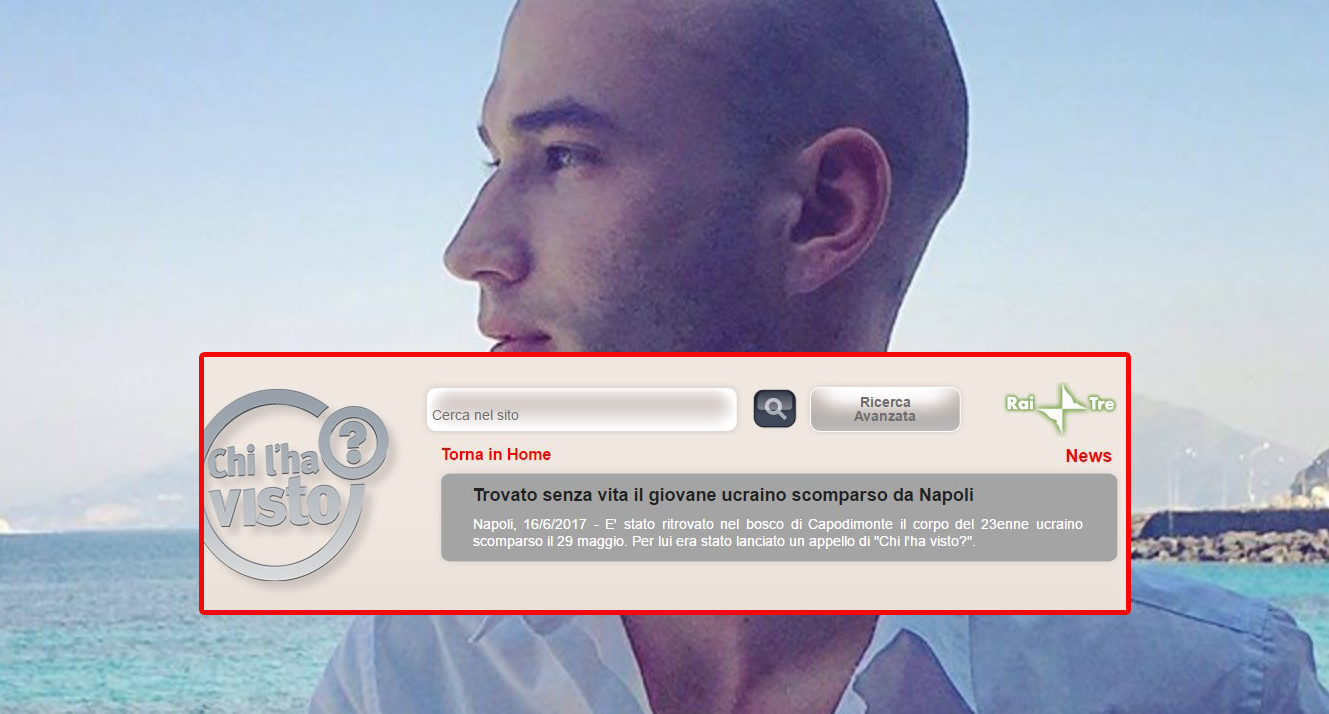 Secondo quanto appreso da Voce di Napoli, si tratterebbe del triste epilogo della vicenda di Alex Pavlenko, il giovane 23enne di origini kazake, ma cittadino ucraino, scomparso a Napoli lo scorso 29 maggio. La notizia che si fossero perse le sue tracce era stata data durante l’ultima puntata di Chi l’ha Visto mercoledì scorso. Anche la trasmissione di Rai 3 ha confermato l’identità della vittima. La madre Natalia, intervenuta anche durante la trasmissione condotta da Federica Sciarelli, sarebbe stata contattata dagli inquirenti per il riconoscimento.