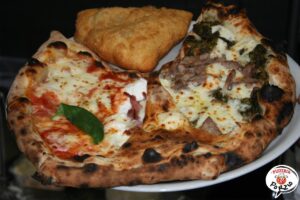 STAND 6 PIZZERIA PORZIO DI ERRICO PORZIO – Il pizzaiolo social maestro Errico Porzio, titolare dell’omonima pizzeria di Soccavo, presente allo stand 6 con la sua celebre pizza Poker, quattro gusti diversi in un’unica pietanza. Uno spicchio di calzone fritto classico, uno di calzone al forno con salame, uno spicchio di salsiccia e friarielli e uno della più classica margherita. Una creazione che racchiude tutta la tradizione e il gusto della pizza napoletana per eccellenza, quella più rustica e casereccia.