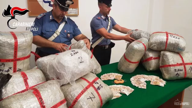 Nel corso di perquisizioni effettuate contemporaneamente a Sant’Antonio Abate, Santa Maria la Carità e Pompei, i militari dell’Arma hanno rinvenuto 108 kg di marijuana contenuti in 22 bustoni di cellophane chiusi ermeticamente e nascosti in un box a Santa Maria la Carità nella disponibilità di entrambi; sequestrati anche 6500 euro in casa del 27enne. Gli arrestati dopo le formalità sono stati condotti nel carcere di Poggioreale.