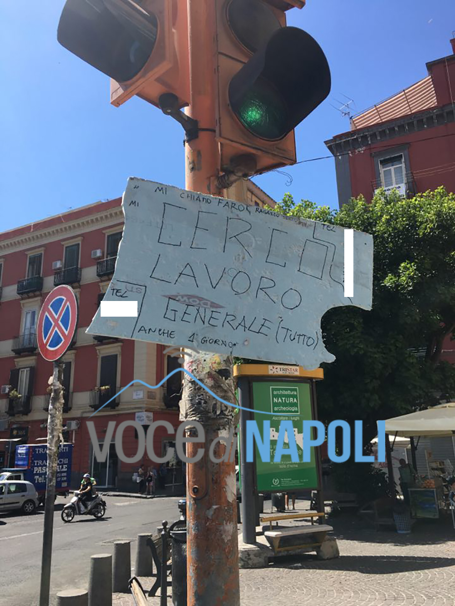 Un cartello particolare è apparso questa mattina in Piazza Mazzini a Napoli, l’annuncio è un classico ‘cerco lavoro’ eppure la persona che lo ha affisso in pieno centro ha trovato un modo sicuramente creativo e geniale per farsi notare.