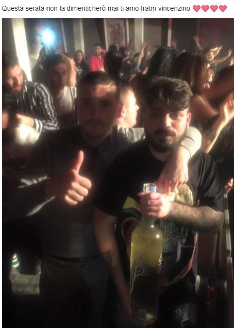 LACRIME DI COCCODRILLO SU FACEBOOK – Lo stesso Tabasco il 19 febbraio, giorno in cui venne ritrovato il cadavere di Vincenzo, pubblicò su Facebook una foto con la vittima durante una serata in discoteca. Nell’immagine si vede Amendola con il pollice alzato che abbraccia Tabasco che ha in mano una bottiglia di Belvedere (costosa vodka polacca).