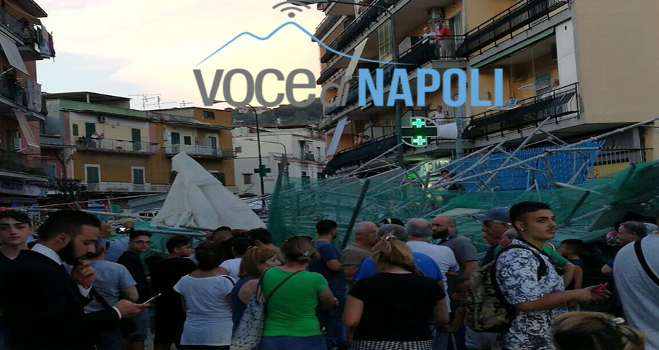 Momenti di terrore in via Provinciale Napoli, alla perifieria occidentale della città, a causa del crollo di un’impalcatura di uno degli edifici nei pressi di una nota pizzeria nella zona di Pianura. La struttura di tubi, pedane e alluminionio è completamente precipitata al suolo, distruggendo le auto parcheggiate nei pressi del palazzo. Nonostante il terrore dovuto al crollo e al forte boato non risultano esserci feriti. Sul posto sono al momento presenti i soccorsi, vigili del fuoco, polizia e carabinieri.