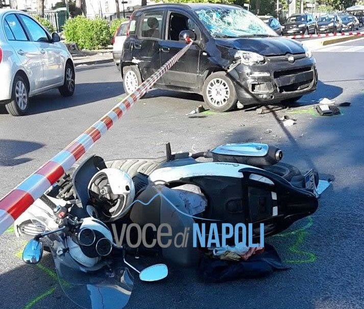 Grave incidente questo pomeriggio al Rione Traiano, frazione del quartiere Soccavo nella zona ovest di Napoli. Due giovani in sella a uno scooter si sono scontrati, per cause ancora in corso di accertamento, con una vettura una Fiat Panda di colore nero lungo viale Traiano.