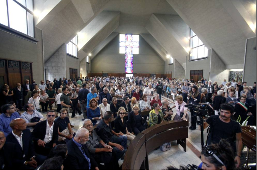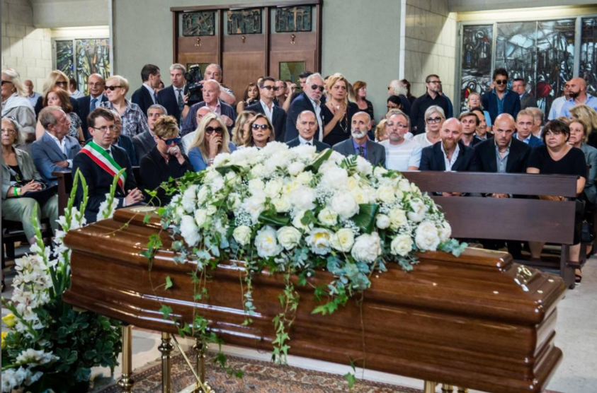 Il feretro del grande conduttore è arrivato ricoperto di rose bianche, la chiesa gremita lo ha accolto con un lungo applauso e tanta commozione. Molti i volti noti intervenuti per dargli l’ultimo saluto nella chiesa di Santa Maria Goretti in via Melchiorre a Milano. Spiccano Mara Venier, Lele Mora, Silvana Giacobini, Diego Dalla Palma, Sandro Mayer.