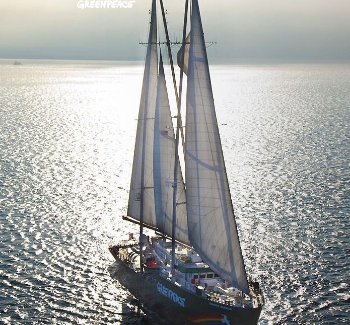La Rainbow Warrior di Greenpaece arriva nel Golfo di Napoli