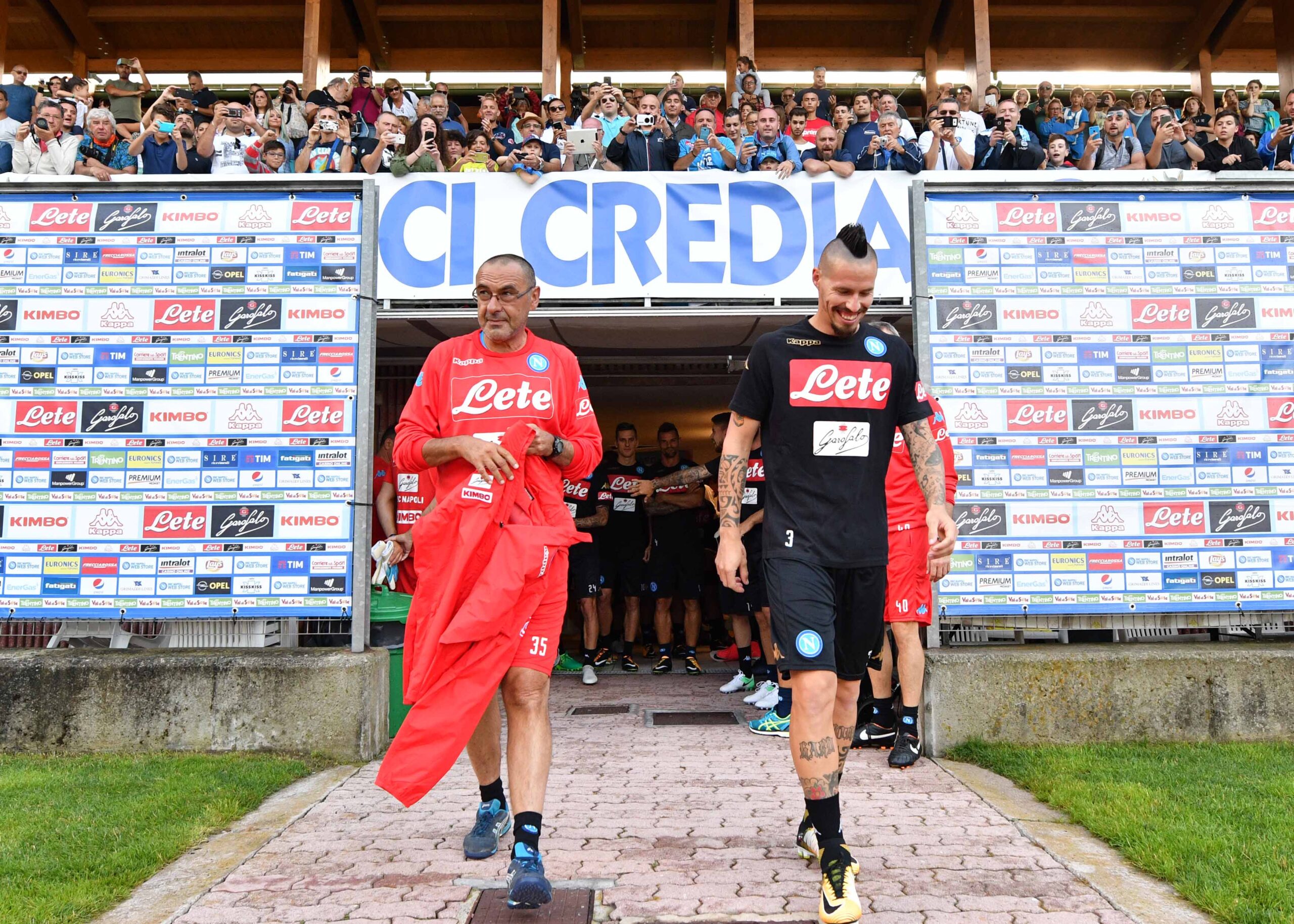 Lavoro duro ma sempre con il pallone al centro dell’allenamento. In questi primi due giorni di ritiro a Dimaro, il Napoli è ripartito, com’era prevedibile, dal credo di Sarri. Quel tiki taka verticale che ha reso celebre negli ultimi due anni la squadra allenata dal tecnico toscano