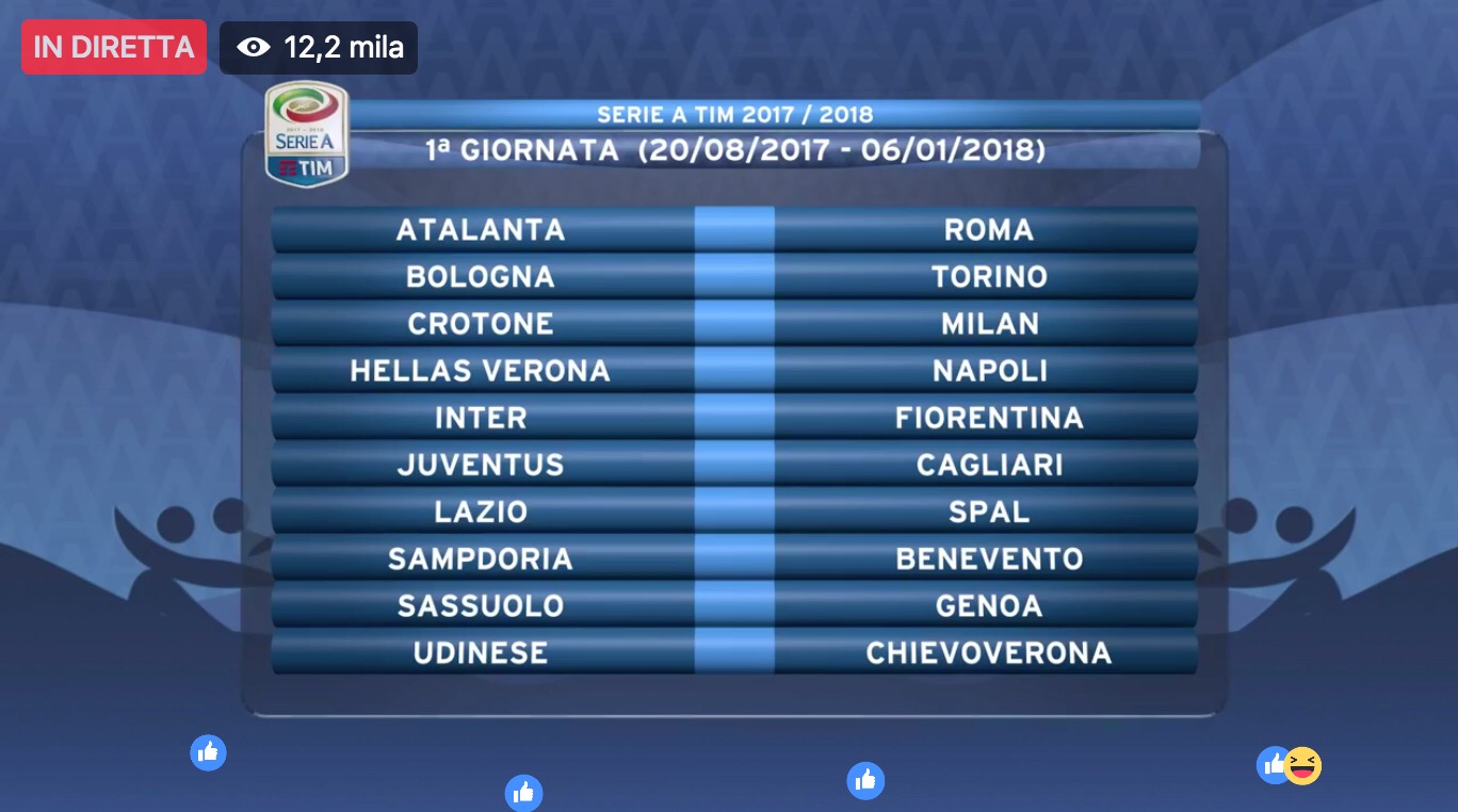 Partirà sabato 19 agosto e si concluderà domenica 20 maggio il campionato di serie A 2017-18. Il programma della stagione prevede tre turni infrasettimanali e cinque soste, una di due settimane perché quest’anno le squadre del massimo campionato italiano scenderanno in campo, sulla falsariga della Premier League, anche il 23 e il 30 dicembre, oltre alla consueta giornata dell’Epifania il 6 gennaio (prima del girone di ritorno). Poi la serie A si fermerà per due settimane e tornerà in campo il 20 e 21 gennaio.