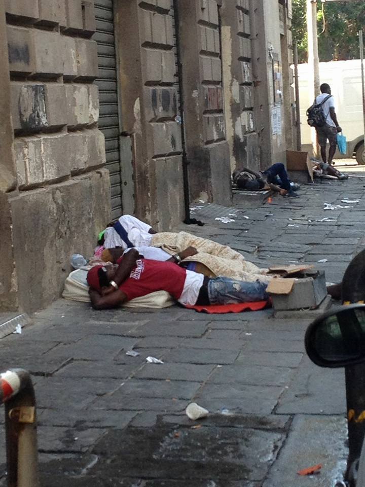 Residenti “esasperati” e “intrappolati” nel loro quartiere a causa della presenza di numerosi immigrati sorpresi a dormire, con mezzi di fortuna, in strada o addirittura sulle auto. Immigrati completamente abbandonati al loro destino che provano a sopravvivere grazie ai proventi dello spaccio, degli scippi, delle bancarelle abusive e della prostituzione. Così via Firenze e le vie limitrofe sono diventate da anni “zone franche“, dove soprattutto di notte è pericoloso incamminarsi. Dove sono all’ordine del giorno liti, risse (tra di loro) oltre ad aggressioni a residenti, turisti e anche forze dell’ordine.