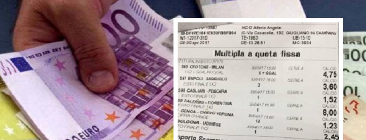 Grande giocata e grande vittoria per un fortunato giocatore di “bollette” a Giugliano in Provincia di Napoli. Presso il centro scommesse Golden Bet sono stati incassati 60mila euro dopo aver scommesso su alcune partite europee.