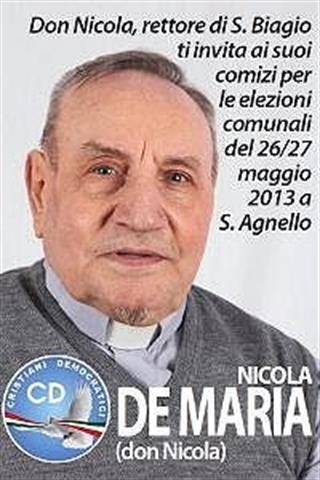 Tante polemiche ma il parroco De Maria non si arrese, alla fine conquistò undici preferenze, il più votato tra i Cristiani Democratici ma non riuscì ad entrare nel Consiglio Comunale. Indimenticabili i suoi atti di carità verso gli altri, il suo spirito buono che portava moltissimi fedeli nella chiesa di San Biagio per trovare un conforto.