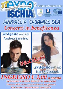 L’annuncio, fatto attraverso la pagina Facebook ufficiale, è stato molto apprezzato dai fan: “Amici miei vi comunico che il mio CONCERTO A ISCHIA si terrà il 29 Agosto dalle ore 21.00. Ingresso 3 euro a persona dove l’incasso andrà devoluto in beneficenza per i danni recati dal sisma dello scorso 21 Agosto. Ora più che mai dobbiamo stare vicini e dare una mano ai nostri fratelli e in particolare alla famiglia del piccolo grande eroe Ciro che ha bisogno del nostro sostegno. Vi aspetto in tanti…sarà il concerto più valido della mia vita !!! CONDIVIDETE …abbiamo bisogno di voi”.
