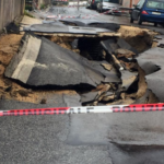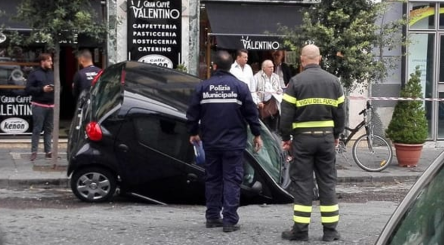 Maltempo a Napoli: crollano le strade, auto sprofonda in una voragine