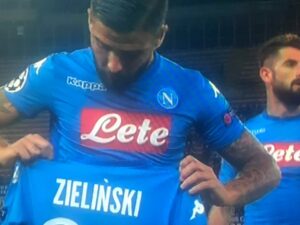 Lorenzo Insigne calciando dal limite dell’area è riuscito a mettere a segno il primo punto. Insigne dopo aver segnato il primo gol portando la squadra in vantaggio, si avvicina a Zielinski per la maglia di Milik ma questi gli dà la sua maglia commettendo un errore prontamente inquadrato dalle telecamere.
