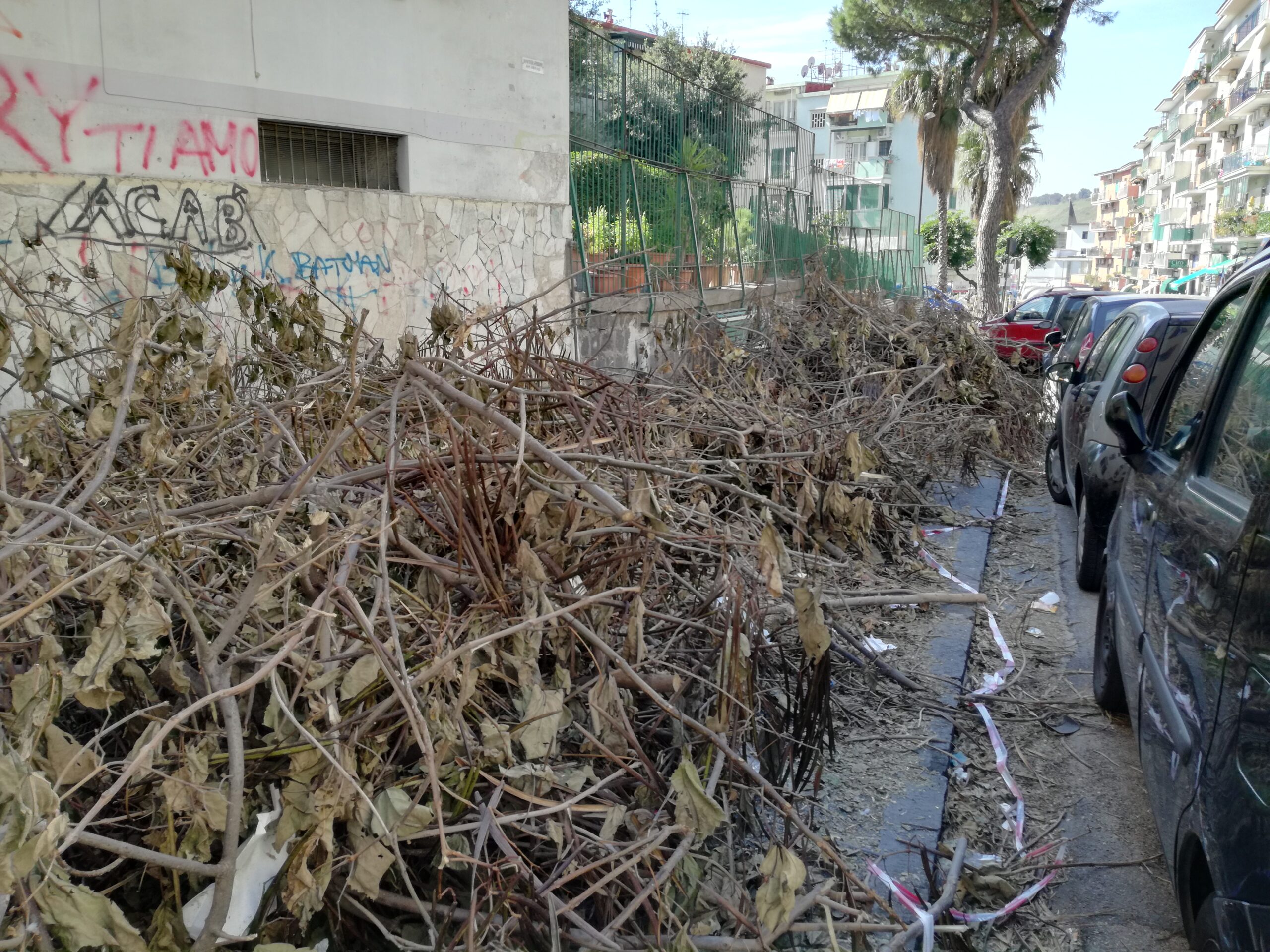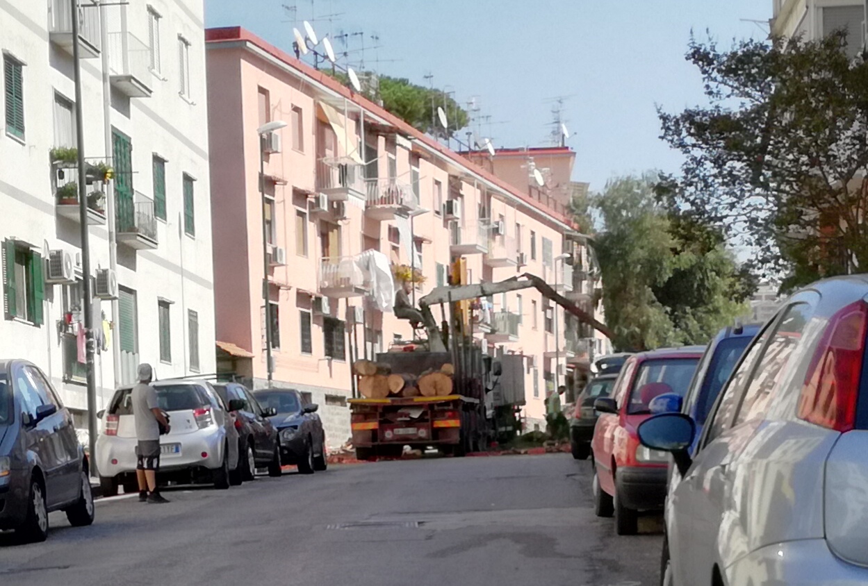 Sabato scorso due camion con gru ed operai armati di seghe elettriche, scortati da una pattuglia della polizia municipale, hanno iniziato ad operare in via Mario Gigante, alla Loggetta, Fuorigrotta.