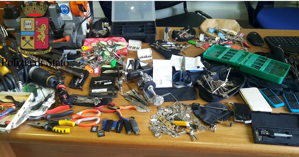Il 10 maggio veniva effettuato dalla Squadra Mobile nel corso delle indagini un sequestro a carico di Imperatore e Rubino, avente ad oggetto dei guanti neri, delle chiavi per aprire serrature blindate, una torcia, i telefoni cellulari in uso ad entrambi, uno smartphone contenente numerose foto di serrature e chiavi, alcuni video ritraenti persone impiegate ad aprire portoni di ingresso di vari fabbricati, nonché foto di chiavi blindate. Dall’analisi di tale materiale e dalle attività tecniche di indagine poste in essere dagli uomini della Squadra Mobile partenopea, si risaliva all’attività della banda, ai ruoli svolti da ciascun associato e alle modalità operative poste in essere dagli stessi per duplicare le chiavi e mettere a segno i furti.