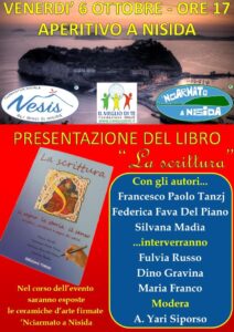 E’ in programma alle 17 di oggi, venerdì 6 ottobre, nell’incantevole scenario dell’Isola di Nisida, a Napoli, la presentazione del libro “La scrittura – Il segno, la storia, il senso. Scrittori, scritture e segni di-versi”.