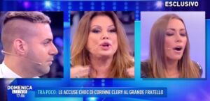 In studio per difendere Corinne è intervenuto il suo compagno, Angelo Costabile. La storia si è riaccesa tra la Grandi e la Clery con l’ingresso nella casa del Gf Vip, Corinne ha raccontato ai compagni alcuni dettagli scottanti: “Ma lei si inventa tutto quando va in tv, all’inizio quando io mi sono messa insieme al suo ex marito le volevo bene e i nostri rapporti erano tranquilli. Poi da quando lui ha chiesto il divorzio lei è cambiata. Ha iniziato a dire che le avevo rubato il marito. Poi un giorno l’ho incontrata per strada, mi guardava strana, lei mi voleva menare con la borsa, mi correva dietro con la borsa. Io le ho detto ‘ma dove corri te che non ce la fai”.