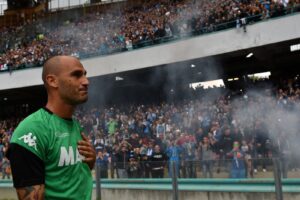 Il difensore della Loggetta, capitano oggi del Sassuolo, ha ricevuto prima del fischio d’inizio il giusto e doveroso riconoscimento da parte dei suoi tifosi e soprattutto amici. Una standing ovation degli oltre 50mila sostenitori presenti sugli spalti ha accolto l’ingresso in campo di Cannavaro che si è recato sotto la curva B per l’omaggio dei tifosi.