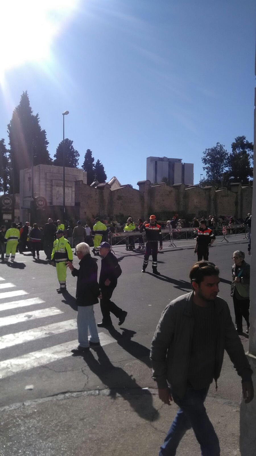 “L’incrocio fra il traffico veicolare, seppur limitato, e il grande flusso di persone, ha creato, come potete immaginare, non pochi problemi – spiega Gianluca Engle, giovane volontario dei Falchi del Sud, un associazione di protezione civile del Vomero – abbiamo regolato il flusso di persone sulle strisce pedonali ed aiutato le numerose persone anziane, soprattutto sulle scalinate all’interno del cimitero”. Si sono registrati piccoli infortuni e un intervento del 118 dovuti ad una caduta di una persona anziana.