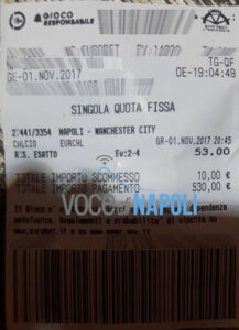 Ieri sera invece la vittoria del Manchester City sul Napoli ha regalato a uno scommettitore (di certo non tifoso del Napoli) poco più di 500 euro con una puntata da 10 sul risultato esatto dell’incontro del San Paolo: il 4-2 a favore della squadra di Pep Guardiola. Risultato quotato 53 volte la posta.