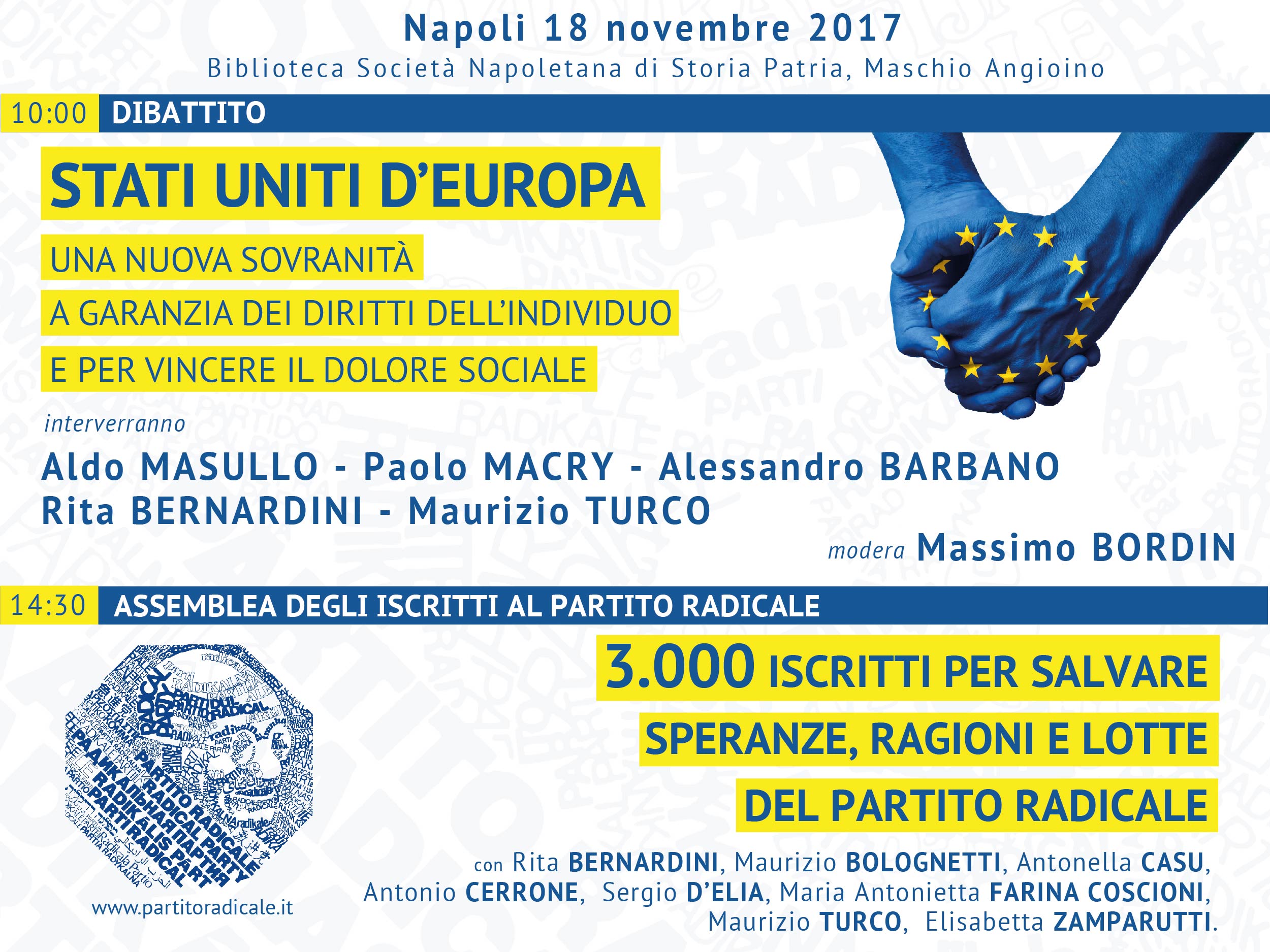 Alla maggior parte del popolo italiano è stato nascosto anche questo, il pericolo di veder scomparire il Partito radicale. Per questo a Napoli, il prossimo sabato 18 novembre è stata organizzata una giornata tutta “radicale”. Presso la Biblioteca Società Napoletana di Storia Patria del Maschio Angioino, Aldo Masullo, Alessandro Barbano e Paolo Macry, moderati da Massimo Bordin, parleranno di Stati Uniti d’Europa: una nuova sovranità a garanzia dei diritti dell’individuo e per vincere il dolore sociale.