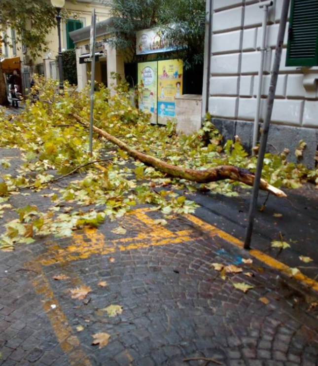 Il maltempo che ha investito Napoli tra la notte di domenica e lunedì mattina ha creato non pochi disagi in città. I forti venti che si sono abbattuti in alcune zone hanno provocato diversi danni, al Vomero, ad esempio, in via Enrico Alvino, un albero è caduto sul marciapiede nei pressi di due scuole.