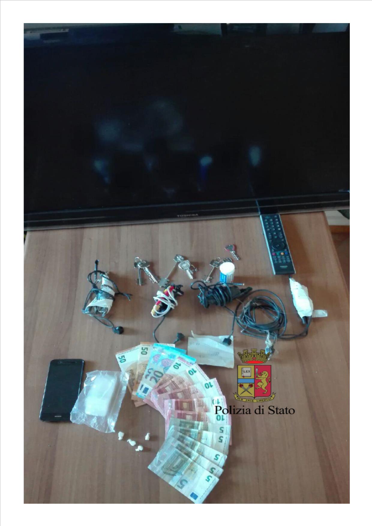 Nell’attimo in cui l’uomo si apprestava ad uscire dal circoletto, chiudendo a chiave la porta, i poliziotti sono intervenuti bloccandolo. Sequestrate quattro dosi di cocaina, la somma di 215 euro in contanti ed un impianto di videosorveglianza, composto da un televisore Toshiba da 40 pollici, corredato da telecamere che inviavano le immagini di via Pazzigno, via Comunale Ottaviano in direzione sia di via Ferrante Imparato che di Corso San Giovanni, nonché vico Catari.
