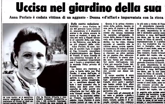 Era il 31 marzo del 1981 quando Anna Parlato Grimaldi fu uccisa da 4 colpi di pistola nel giardino della sua villa in Via Petrarca. Una delle più brillanti esponenti dell’aristocrazia finanziaria napoletana, era sposata con l’armatore Ugo Grimaldi, nipote di Achille Lauro, era una donna che divorava la vita. Quell’omicidio che tanto scalpore destò nei salotti napoletani ancora oggi, a distanza di 36 anni, non ha un colpevole.