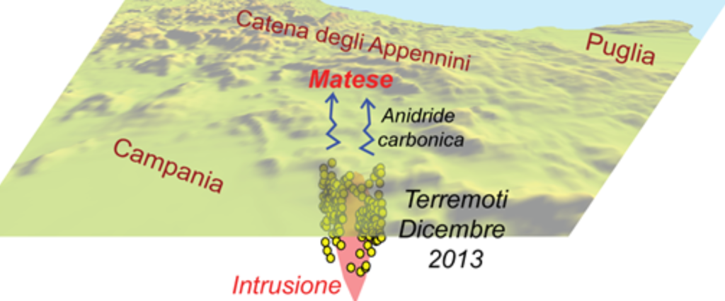 “Le catene montuose sono generalmente caratterizzate da terremoti riconducibili all’attivazione di faglie che si muovono in risposta a sforzi tettonici. Tuttavia, studiando una sequenza sismica anomala, avvenuta nel dicembre 2013-2014 nell’area del Sannio-Matese con magnitudo massima 5, abbiamo scoperto che questi terremoti sono stati innescati da una risalita di magma nella crosta tra i 15 e i 25 km di profondità. Un’anomalia legata non solo alla profondità dei terremoti di questa sequenza (tra 10 e 25 km), rispetto a quella più superficiale dell’area (< 10-15 km), ma anche alle forme d’onda degli eventi più importanti, simili a quelle dei terremoti in aree vulcaniche“.