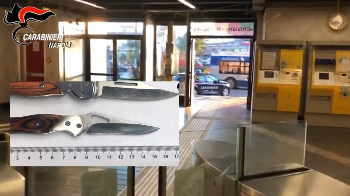 Il giovane di 15 anni è stato notato intrattenersi nella stazione della metropolitana di Chiaiano insieme al fratellino di 12 anni. Sottoposto a controlli, è stato scoperto a detenere 2 coltelli, che portava occultati sulla persona e che gli sono stati sequestrati.